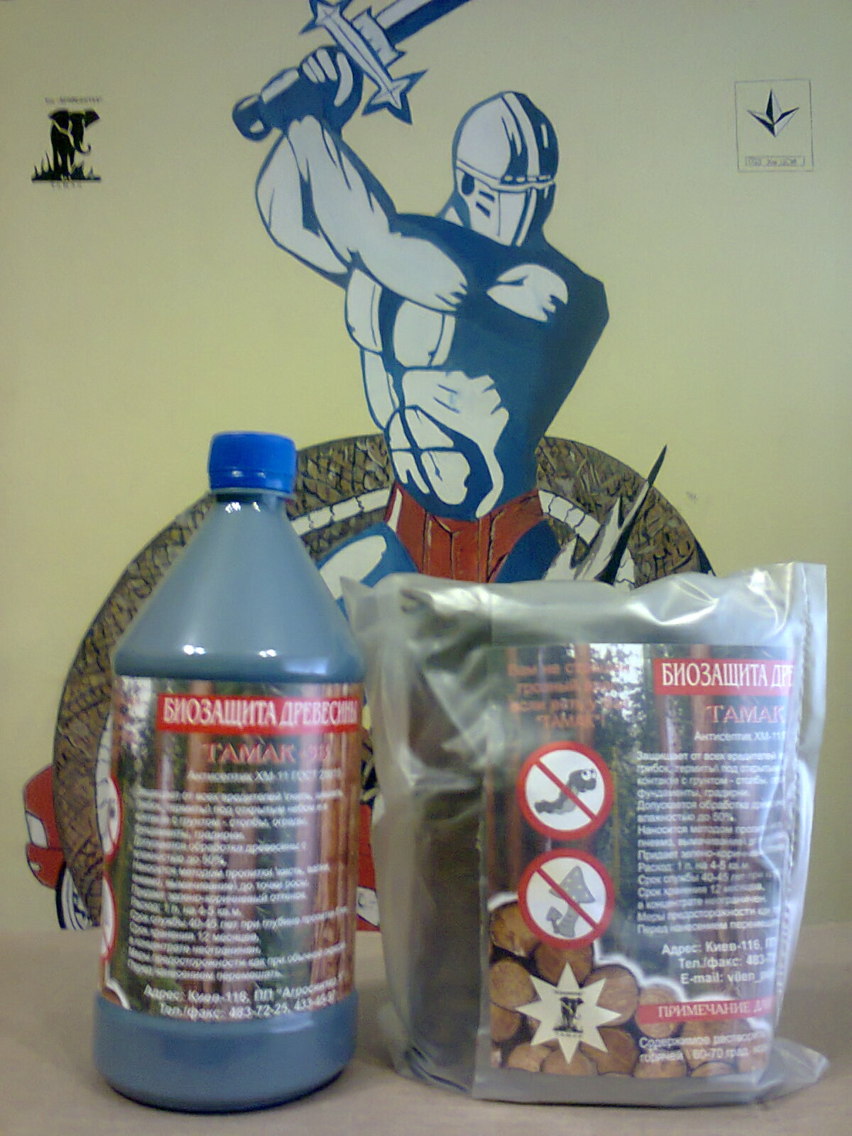 - "ТАМАК-3Н"(антипірен "Т-3А"("БС-13")+ антисептик "Т-3"("ФН") - І група вогнезахисту; VII-XIII клас біозахисту - Вогнебіозахист